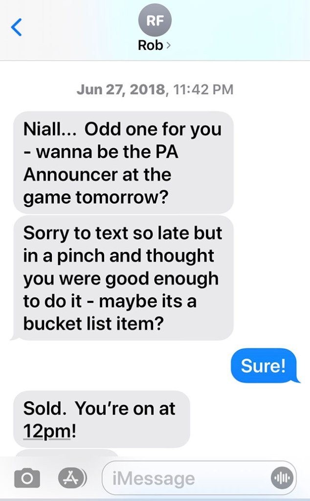 To say Rob has done a lot for me would be a massive understatement. He helped me realize a bucket list dream at 11:42 pm on Thursday, June 27 when this text conversation took place.