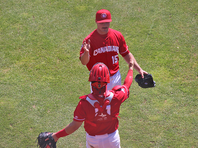 Barger ripped a line drive into the right field corner with two outs in the fifth for extra bases but was thrown out at third on a 9-4-5 play to end the inning. Some of the Canadians took exception to Piña’s reaction backing up the play from the mound but Yon came in from left field to get between his pitcher to help keep the peace.