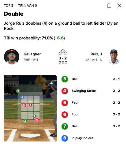 Tri-City would tack on two more runs in the fifth. A 2-2 pitch to Ruiz was called ball three instead of strike three by home plate umpire Jabril Geter-Abdullah despite being at knee level across the plate.