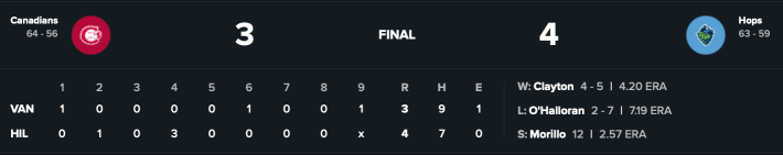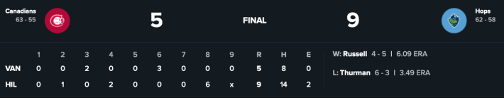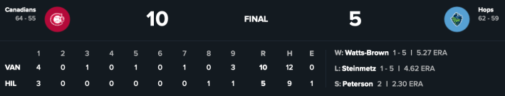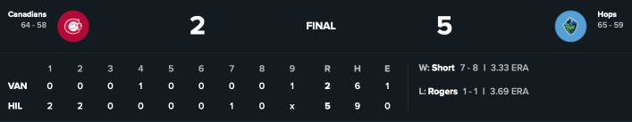 The Vancouver Canadians dropped five of six games to the Hillsboro Hops at Hillsboro Ballpark in their final regular season series on the road.
