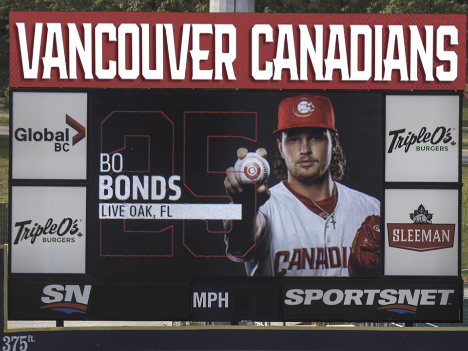 Vancouver manager Brent Lavallee called upon Bonds to lock down Game 2 of the Northwest League Championship Series against Spokane and Bonds did just that as he put up a zero in the ninth with a strikeout to tie the best-of-five series on September 11.