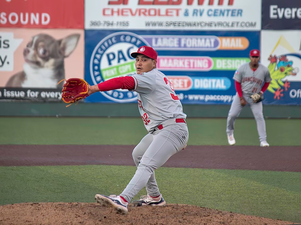 Notes – 2022-2023 returnee earned victory with scoreless inning and a strikeout in Game 1 versus Hillsboro on April 12…Rung up two batters in shutout inning against Hillsboro on April 14…Struck out two in 1/1-3 shutout innings at Eugene on April 17…Finished April with a 0.00 ERA after retiring all seven hitters he faced beginning April 19 at Eugene (0.1IP), April 23 versus Spokane (1IP, 1K) and at a win in Tri-City on April 30 (0.2IP, 1K)…Picked up win at Tri-City with one inning of two-run ball…Collected first hold with one strikeout in a perfect inning in victory at Tri-City on June 1…Tossed two scoreless stanzas against Everett on June 7…Stranded two runners and struck out two over 2-2/3 shutout innings against Spokane on June 12…Struck out two batters in spotless frame in win at Tri-City on June 18…Fanned two batters again in perfect stanza at Tri-City on June 20…Gave up two runs but struck out four over 1-2/3 innings to get the win against Hillsboro on June 27…Picked up first save with shutout inning and one strikeout against Hillsboro on June 30, completing June with a 1.59 ERA…Struck out lone batter he faced against Everett on July 3…Threw 2-1/3 shutout innings with one strikeout in win against Tri-City on August 1…Released by the Toronto Blue Jays on August 3.