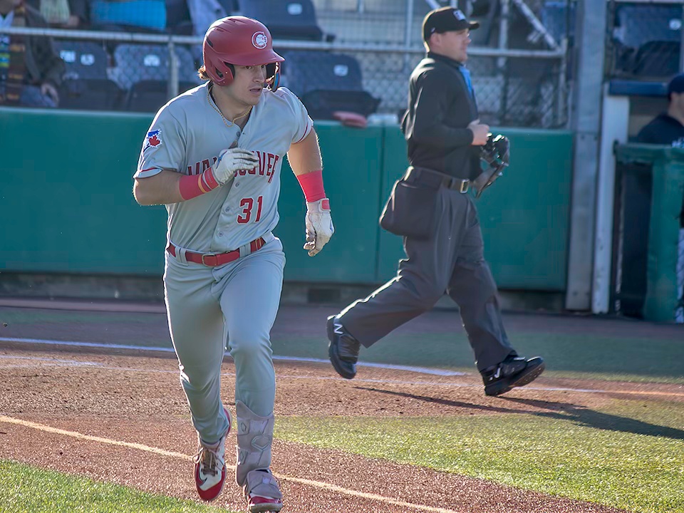 Notes – 2022-2023 returnee and Oakville, Ontario native belted first Vancouver home run in season opener at Spokane on April 5…Singled and scored a run during home opening win against Hillsboro on April 9…Walked and stole a base in win versus Hillsboro on April 10…Two-run single with two walks and two runs scored contributed to five-run rally in the ninth for walkoff win against Hillsboro on April 14…Went 4-for-6 and scored twice in victory at Eugene on April 18…Went 2-for-5 with a stolen base at Eugene on April 19…Singled and walked in Game 1 at Eugene and added RBI single and scored twice in Game 2 victory at Eugene on April 20…Collected three singles, two walks, an RBI and three runs scored in victory at Tri-City on April 30 to finish month with a .262 batting average, a .357 on-base percentage and six stolen bases…Homered, doubled and walked in victory at Tri-City on May 3…Doubled and drove in two runs in triumph at Tri-City on May 4…Singled twice and stole a base against Everett on May 7…Homered against Everett on May 9…Singled, walked and swiped a base at Spokane on May 14…Drove in a run as part of 2-for-5 night in win at Spokane on May 17…Doubled, singled and threw out a runner at home in Game 2 at Spokane on May 18…Went 3-for-4 with a grand slam and finished a triple shy of the cylce at Spokane on May 19…Went 2-for-4 with two-run triple at Hillsboro on May 22…Singled, walked and scored a run at Hillsboro on May 24…Hit by a pitch, walked and scored a run in win at Hillsboro on May May 25…Socked two-run homer in two-hit night and walked twice against Tri-City on May 29…Drew three walks and stole a base against Tri-City on May 30…Went 2-for-4 in Game 1 win against Tri-City and walked twice, stole a base and scored a run in Game 2 win versus Tri-City on May 31, slashing .273/.379/489 for the month…Singled and walked in victory against Tri-City on June 1…Slugged pair of two-run doubles, was hit by pitch and scored three runs in win at Everett on June 5…Singled and walked at Everett on June 6…Hit game-tying two-run triple, walked twice and scored a run in comeback win at Everett on June 8…Placed on seven-day injured list on June 12 and activated on June 28…Walked twice and scored a run in win against Hillsboro on June 28…Collected RBI double among three hits and swiped a base in win against Hillsboro on June 29 to produce a .400 OBP for the month…Singled, walked, stole a base and scored on Canada Day against Everett…Walked and belted a two-run homer in the eighth in victory against Everett on July 2…Hit by a pitch and singled at Everett on July 4…Doubled twice with two RBI and scored a run in victory at Everett on July 5…Contributed two singles, a walk, two RBI, stole a base and scored a run in win at Eugene on July 9…Went 1-for-4 with two RBI, a stolen base and two runs scored in victory at Eugene on July 10…Doubled and singled at Eugene on July 11…Got on base four times with two-run double, two singles, a walk, a stolen base and a run scored in victory at Eugene on July 14…Hit by a pitch, singled and stole a base against Spokane on July 20…Walked, hit by two pitches, stole two bases and scored twice—including tying run—in walk-off win over Spokane on July 21…Homered at Hillsboro on July 23…Singled twice and scored at Hillsboro on July 24…Homered, walked and recorded an outfield assist at Hillsboro on July 25…Singled, stole a base and scored a run in victory at Hillsboro on July 26…RBI single and stolen base at Hillsboro on July 27…Doubled and walked against Tri-City on July 31 for a monthly batting line of .258/.343/.427…Walked twice and scored a run in triumph over Tri-City on August 1…Walked and scored in win at Tri-City on August 3…Singled in final game with C’s versus Tri-City on August 4…Led squad in stolen bases with 22 and was only caught twice…Made 66 starts in center field and four in left field…Played 221 games with Monty’s Mounties…Promoted to Double-A New Hampshire on August 6.