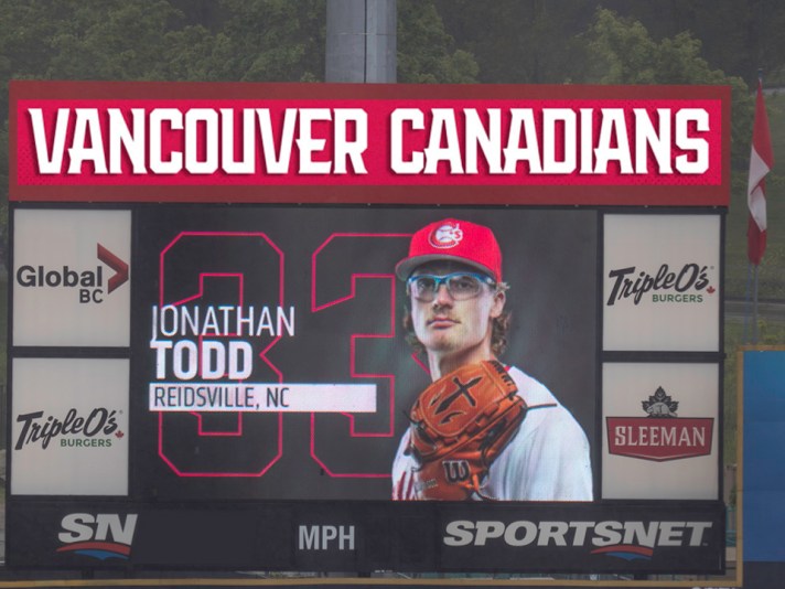 The regular season saw Todd begin his first full season with the Vancouver Canadians and he earned a victory in his first appearance at Tri-City on April 6. He earned his second win of the year with two innings of one-run relief that included two strikeouts at Everett on April 23. Another big contribution in that series at Funko Field came in the series finale on April 27 in which he stranded two runners and pitched 1-2/3 scoreless stanzas with one strikeout in an eventual 10-winning victory.